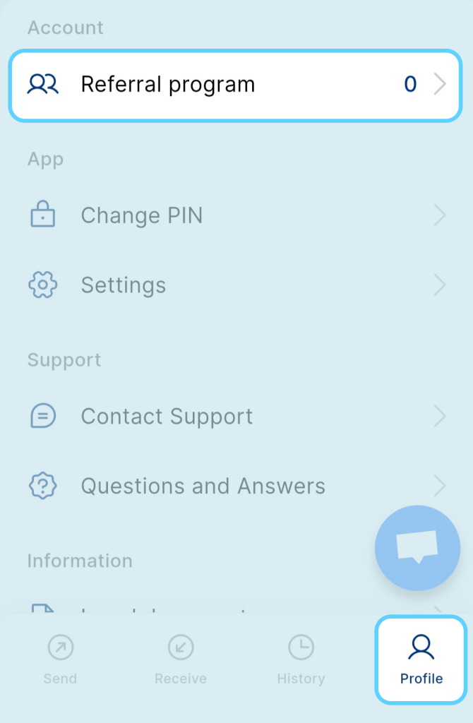 Un lien de parrainage est généré automatiquement pour chaque utilisateur. Vous le trouverez dans le profil de l’application, dans la section « Programme de parrainage ».